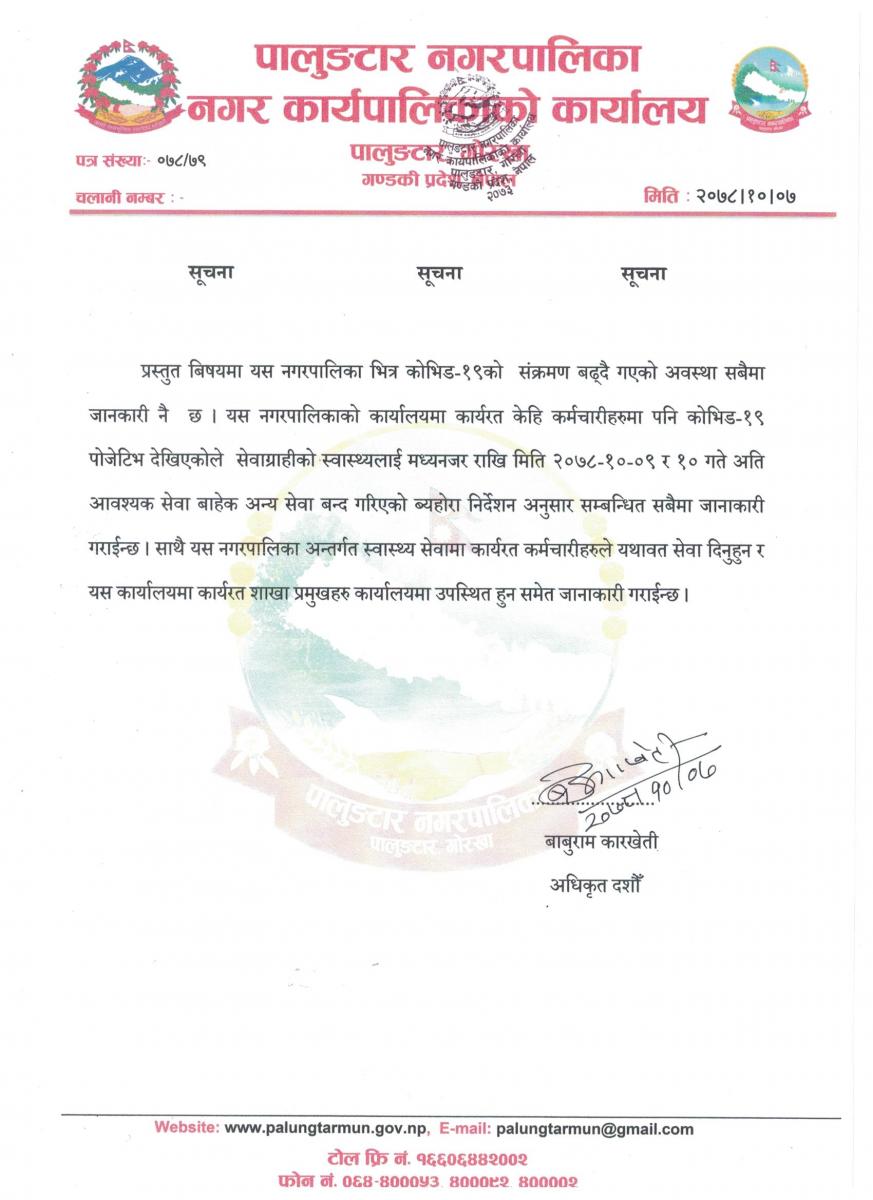 काेभिड सम्बन्धि सूचना ।