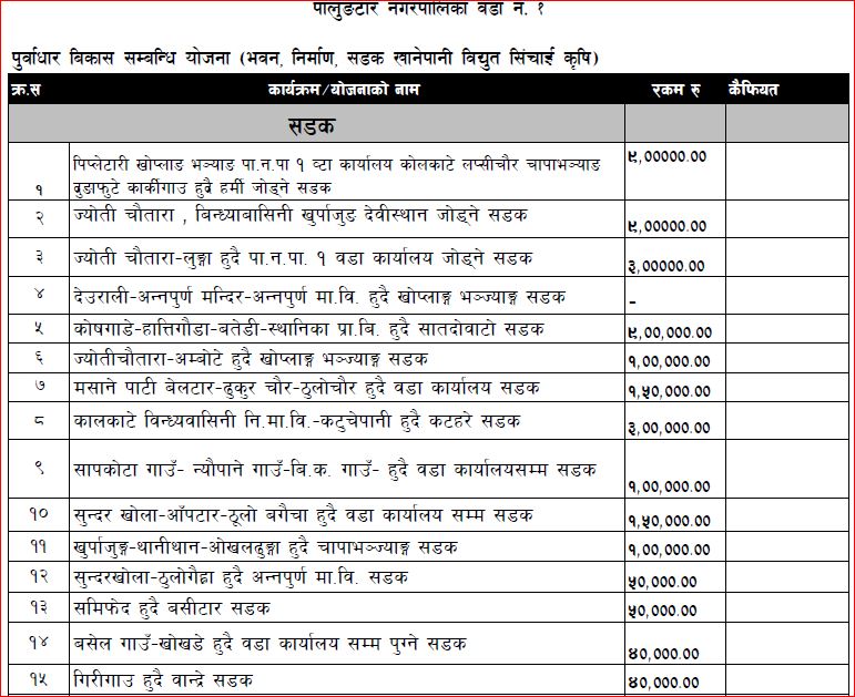 वडा न. १ को बजेट डाउनलोड गर्न यहाँ क्लिक गर्नुहोस.....