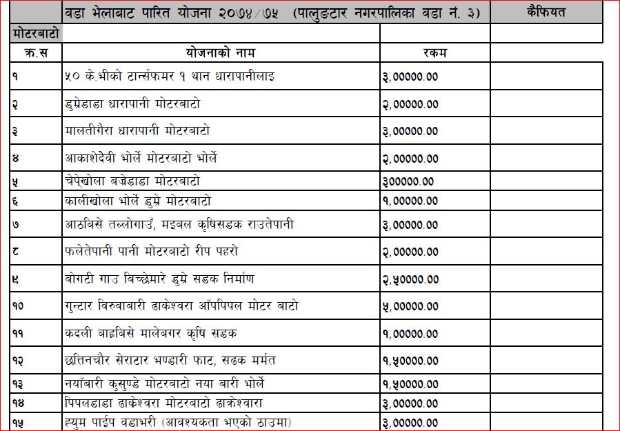 वडा न. ३ को बजेट डाउनलोड गर्न यहाँ क्लिक गर्नुहोस.....