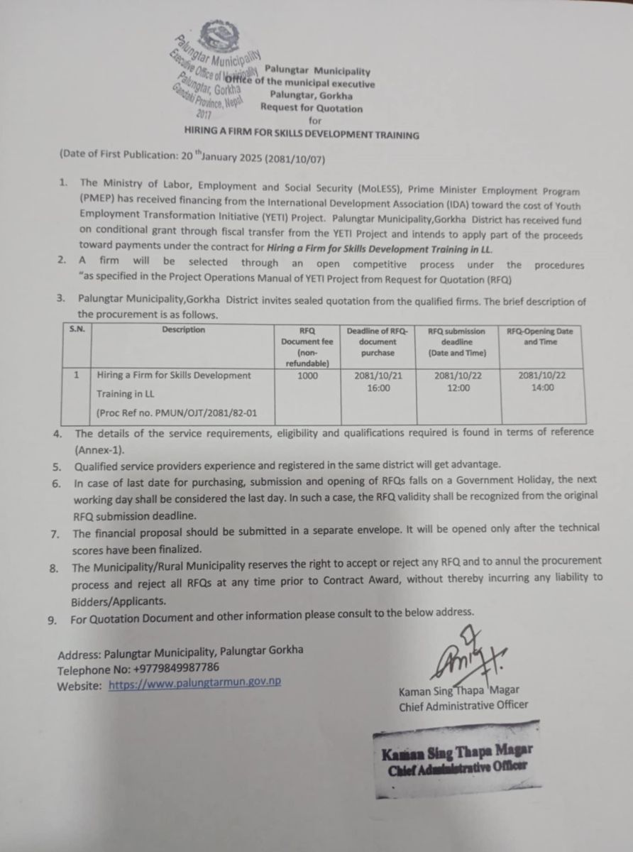 सिप बिकास तालिम सन्चालनका लागि प्रस्ताव आव्हान सम्बन्धी सूचना !