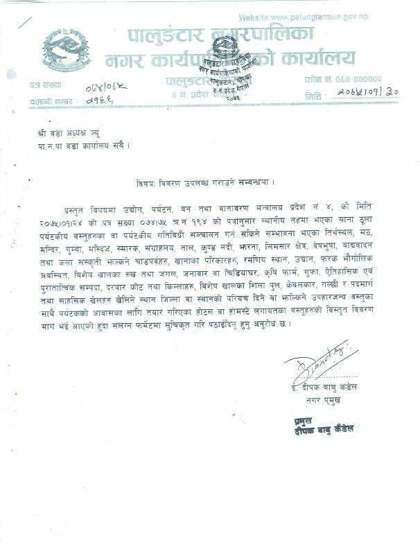 सबै वडा कार्यालयलाई विवरण उपलब्ध गराउने सूचना हेर्न यहाँ क्लिक गर्नु होला.....