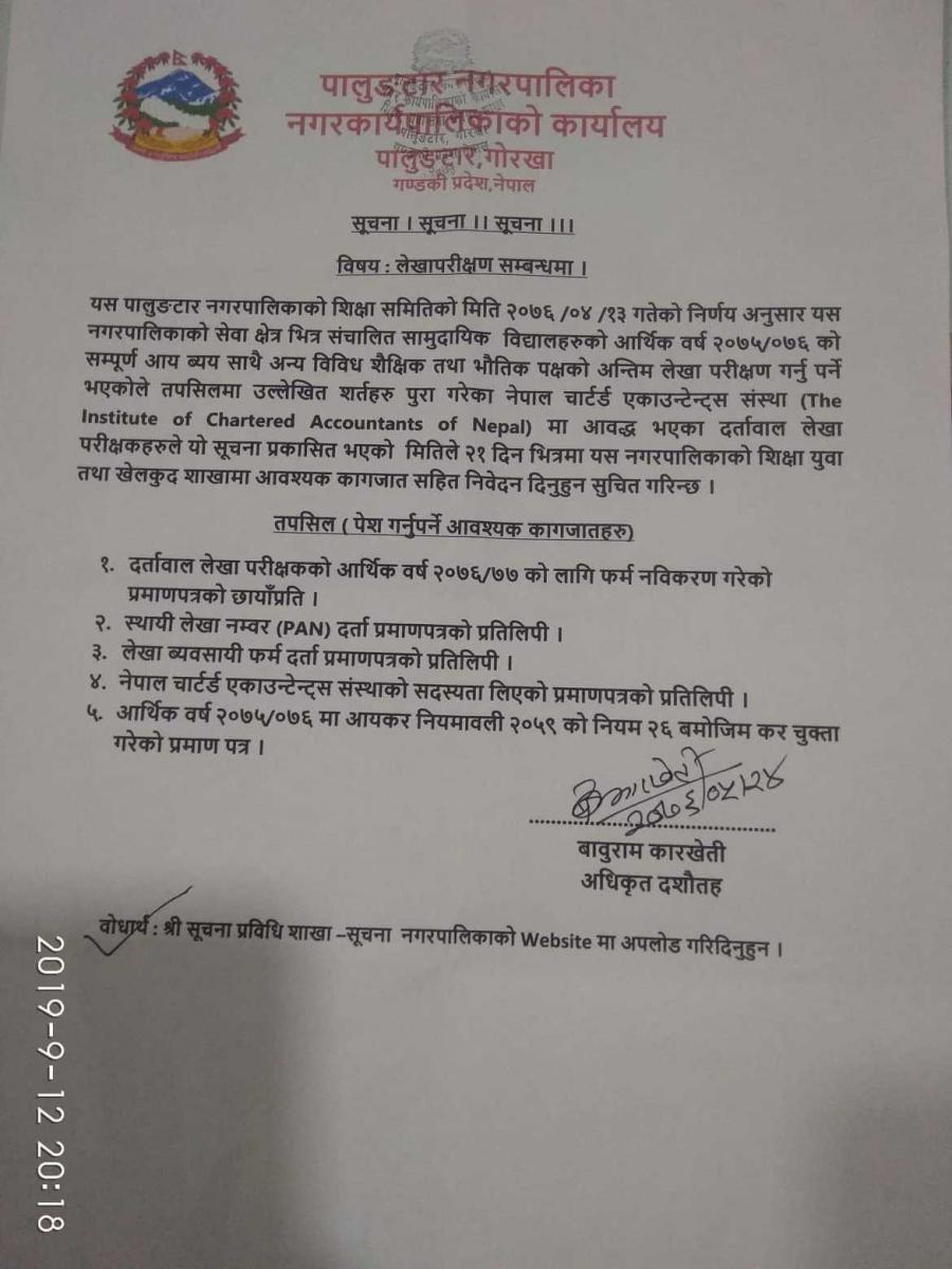 सामुदायिक बिधायालयहरुको लेखपरिक्षण सम्बन्धि सूचना