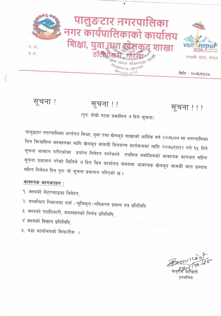 पालुङटार नगरपालिका शिक्षा, यूवा तथा खेलकुद शाखाको अत्यन्त जरुरि सूचना