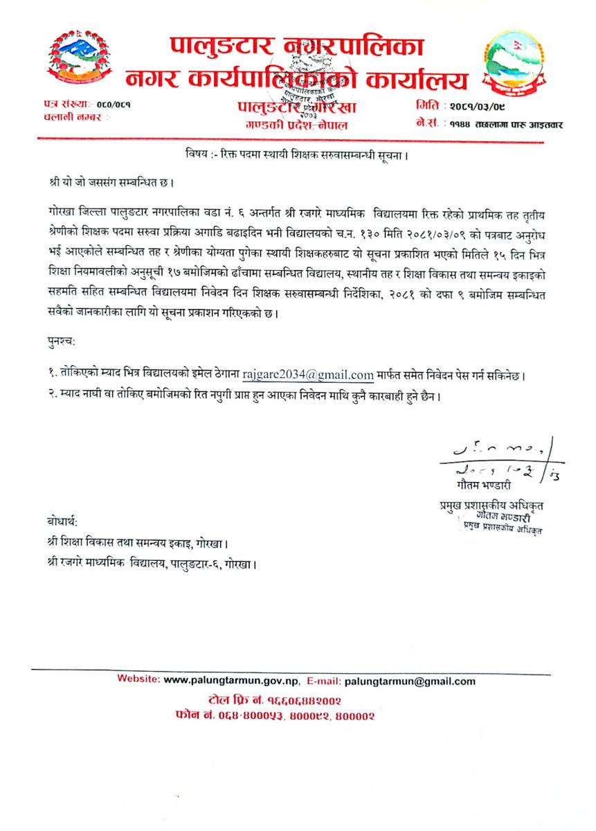 रिक्त पदमा स्थायी शिक्षक सरुवा सम्बन्धि सुचना (रजगरे मा.वि.)