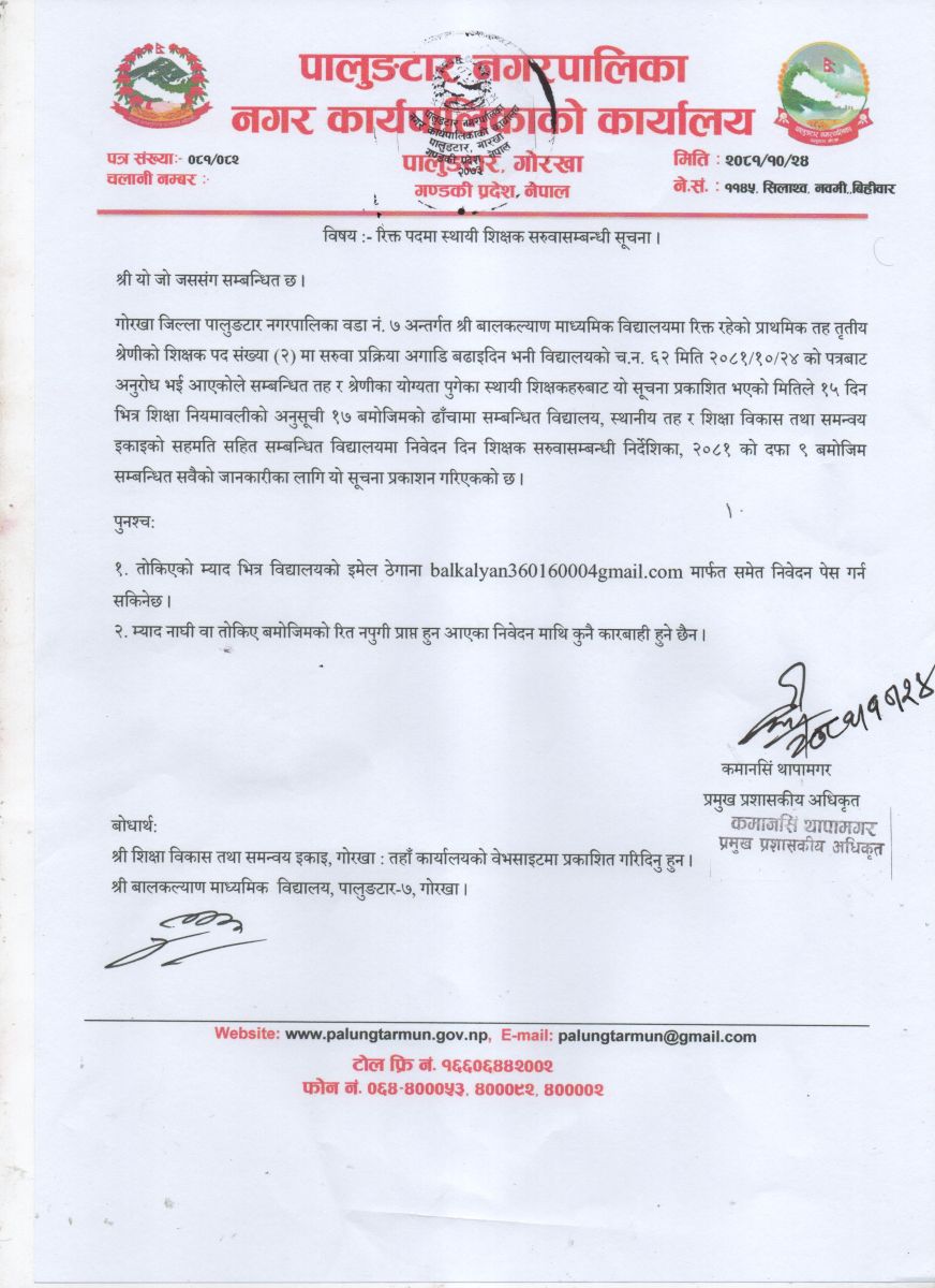 रिक्त पदमा स्थायी शिक्षक सरुवासम्बन्धी सूचना ।