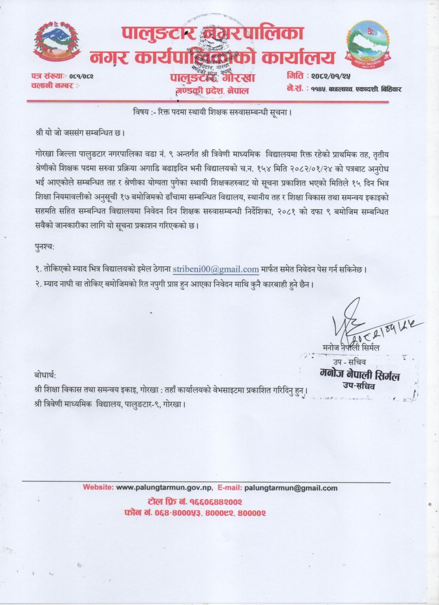 रिक्त पदमा स्थायी शिक्षक सरुवा सम्बन्धी सूचना