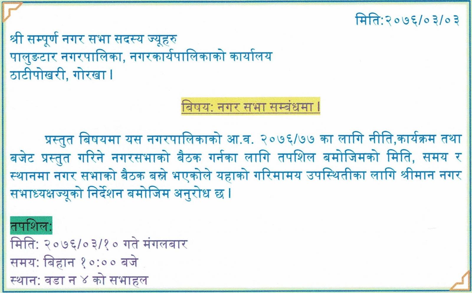 पालुङटार नगरपालिका पाचौ नगर सभा सम्बन्धमा सूचना
