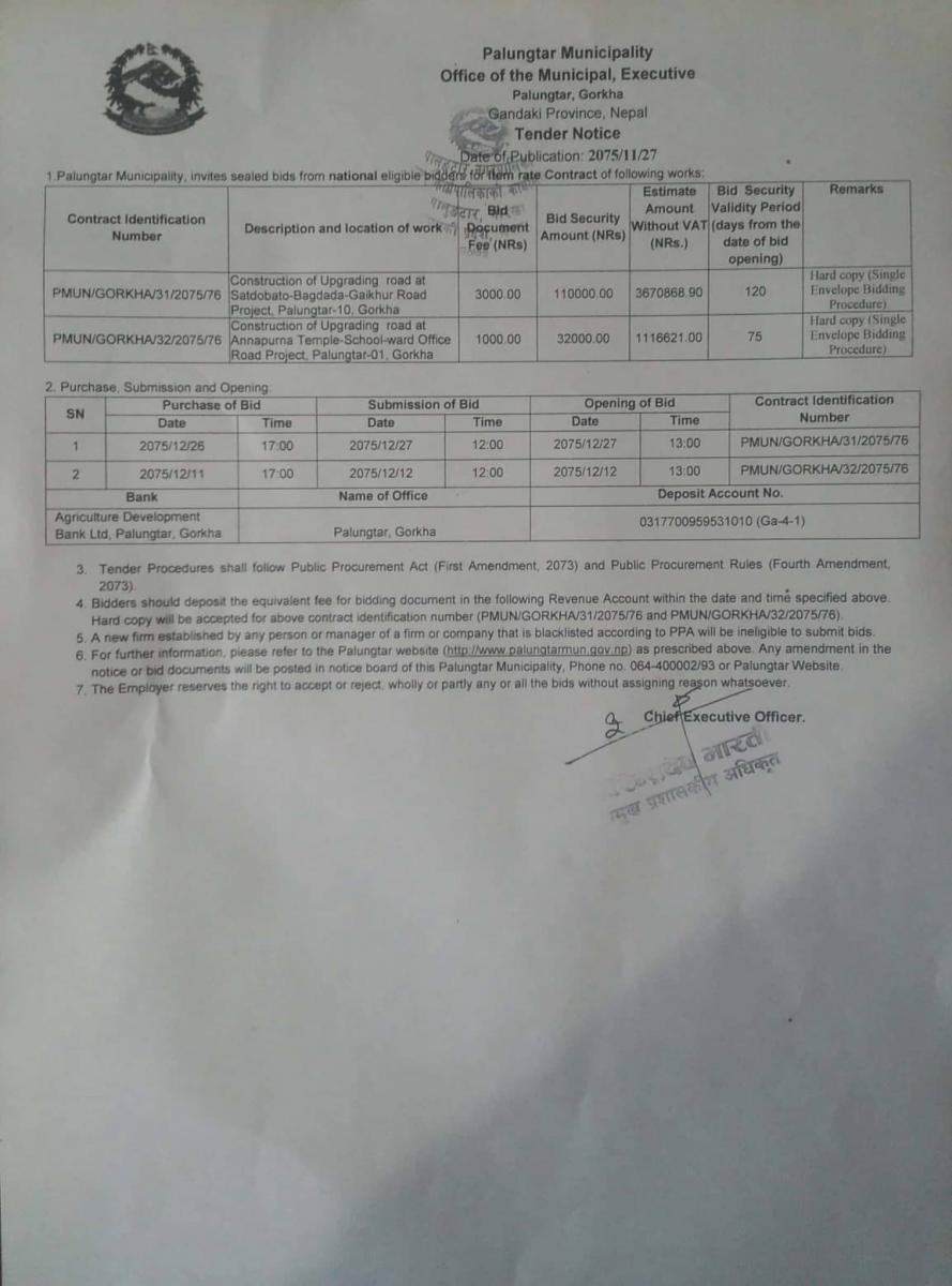शिलबन्दी बोलपत्र/दरभाउपत्र आब्वाहनको सूचना